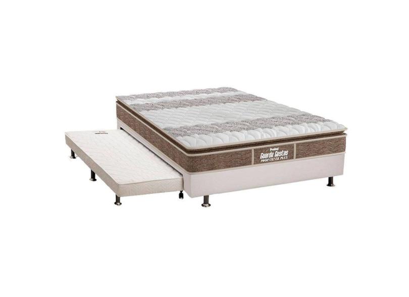 Cama Box c/Auxiliar Casal: Colchão Espuma Probel D33EP Guarda Costas Plus Brown + Base CRC Courano Branco(138x188)