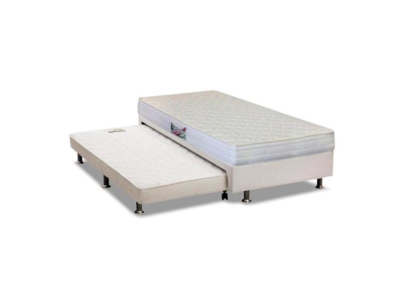 Cama Box c/Auxiliar Solteiro: Colchão Espuma Herval AG65 Frontier + Base crc Courano Branco(88x188)