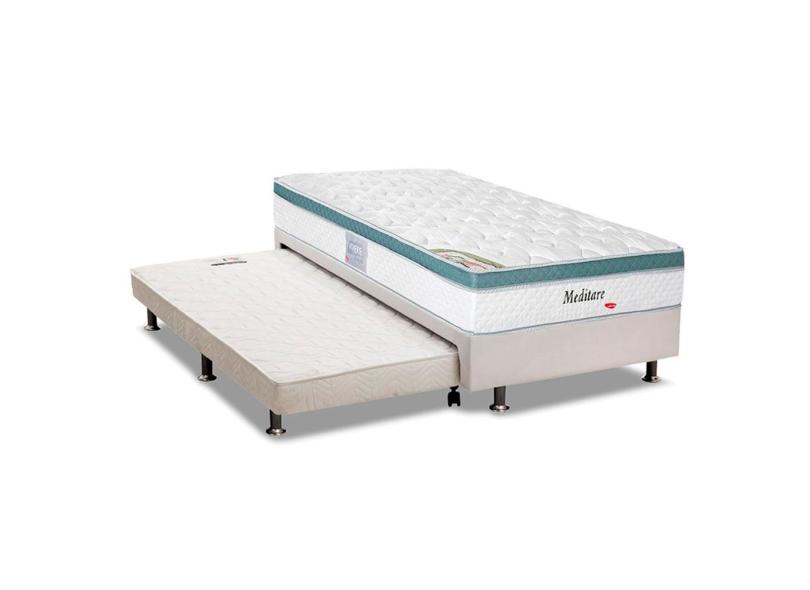 Cama Box c/Auxiliar Solteiro: Colchão Herval MasterPocket Meditare + Base crc Courano Branco(88x188)