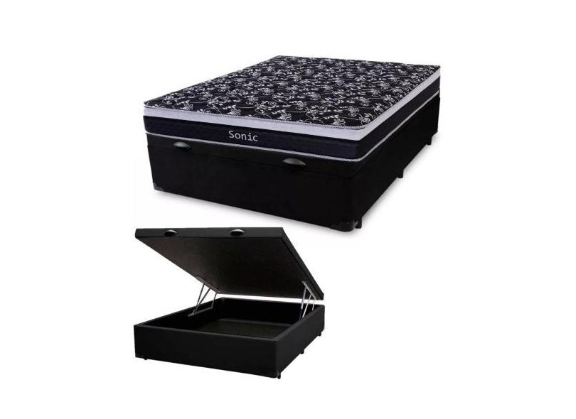 Cama Box c/ Baú Casal + Colchão de Molas Ensacadas Firme para 120 kilo
