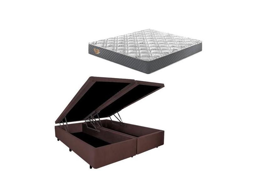 Cama Box C/ Baú King + Colchão Mola Ensacadas Ecoflex - Cama Inhouse