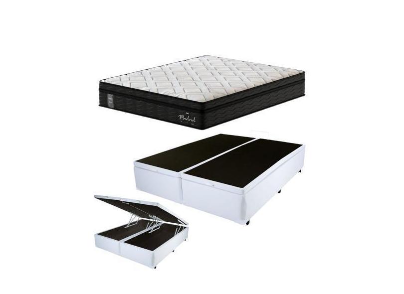 Cama Box C/ Baú Queen + Colchão Mola Ensacada Probel Madrid Pillow