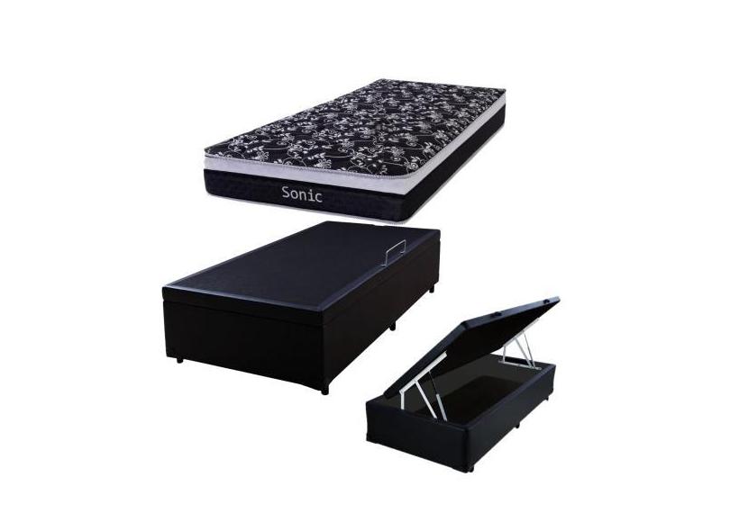 Cama Box C/ Baú Solteiro + Colchão De Molas Ensacadas Firme Para 120 K