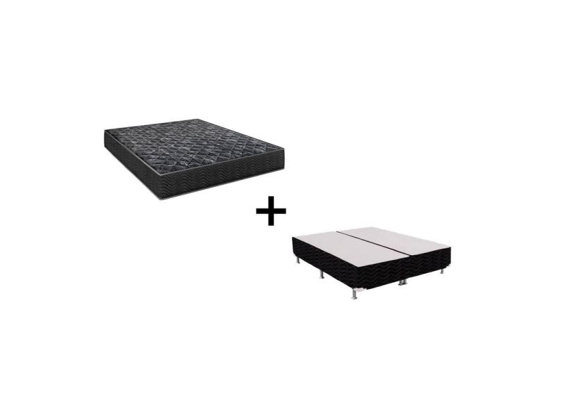 Cama Box Casal 138 Bipartido Matelassê Onda Preto com Colchão Lisboa Espuma D28 Preto Bello Box