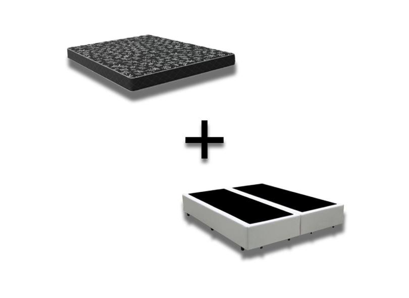 Cama Box Casal 138 Bipartido Tecido Sintético Branco Com Colchão Espuma D20 - Tampo Preto 12cm