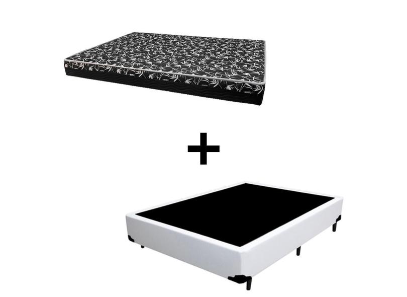 Cama Box Casal 138 Tecido Sintético Branco Com Colchão Hamburgo Bello Box - 100% Espuma - D28 Preto 54x138x188