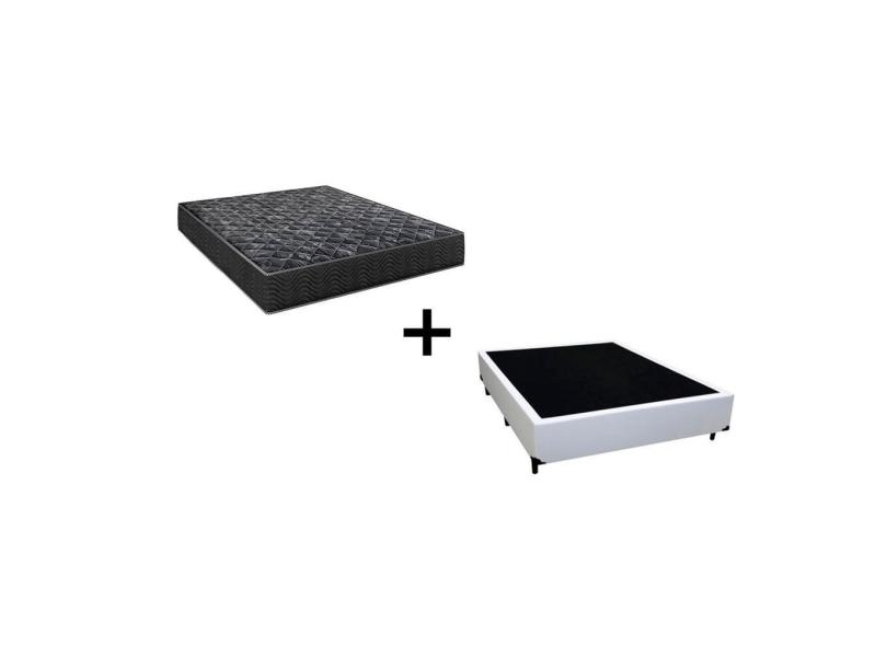 Cama Box Casal 138 Tecido Sintético Branco com Colchão Lisboa Espuma D28 Preto - Bello Box