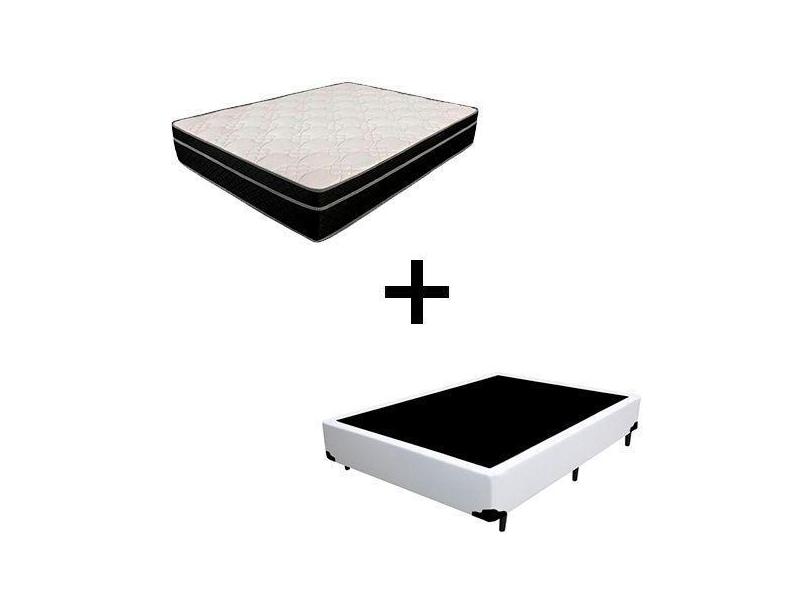 Cama Box Casal 138 - Tecido Sintético Branco Com Colchão Paris - Molas