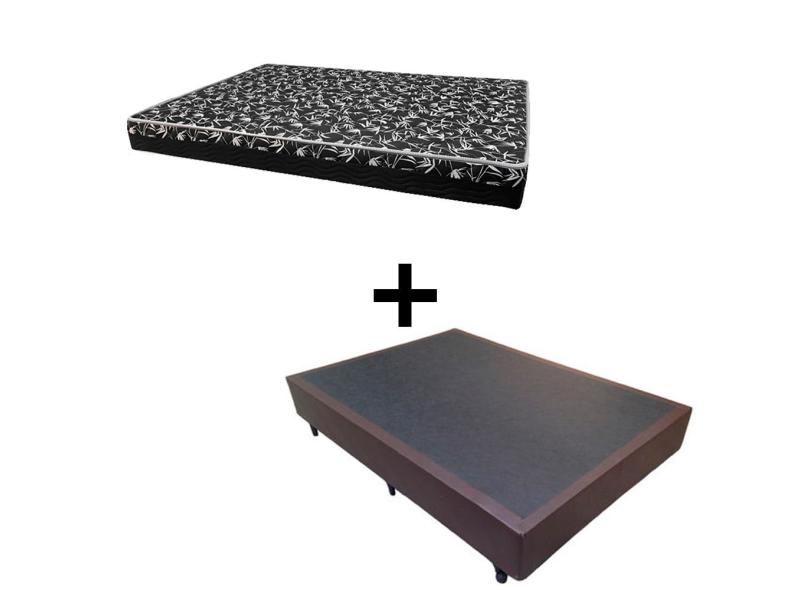 Cama Box Casal 138 Tecido Sintético Marrom Com Colchão Hamburgo Bello Box - 100% Espuma - D28 Preto 54x138x188