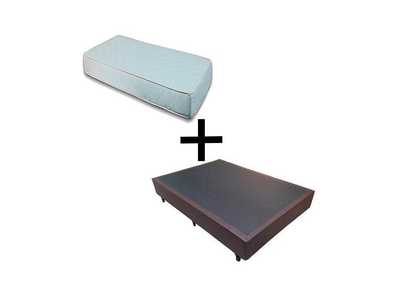 Cama Box Casal 138 - Tecido Sintético Marrom com Colchão Munique Bello Box - 100% Espuma - D33 Branco 54x138x188