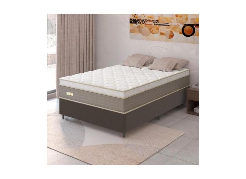 Cama Box Casal 138cm Mola Ensacadas Ferrara Umaflex, Bege/Branco/Marro