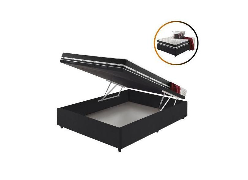 Cama Box Casal Baú Preto + Colchão Molas Ensacadas Los Angeles 138X188