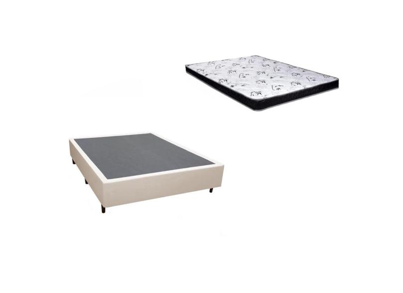 Cama Box casal bege sintético + Colchão Molas Bonnel 1,38 x 1,88 x 48 cm