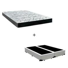 Cama Box Casal Bipartido - Tecido Sintético Branco Com Colchão Extra F