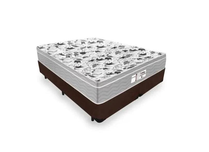 Cama Box Casal Bipartido Tecido Sintético Marrom com Colchão De Molas Ensacadas - Probel Evolution