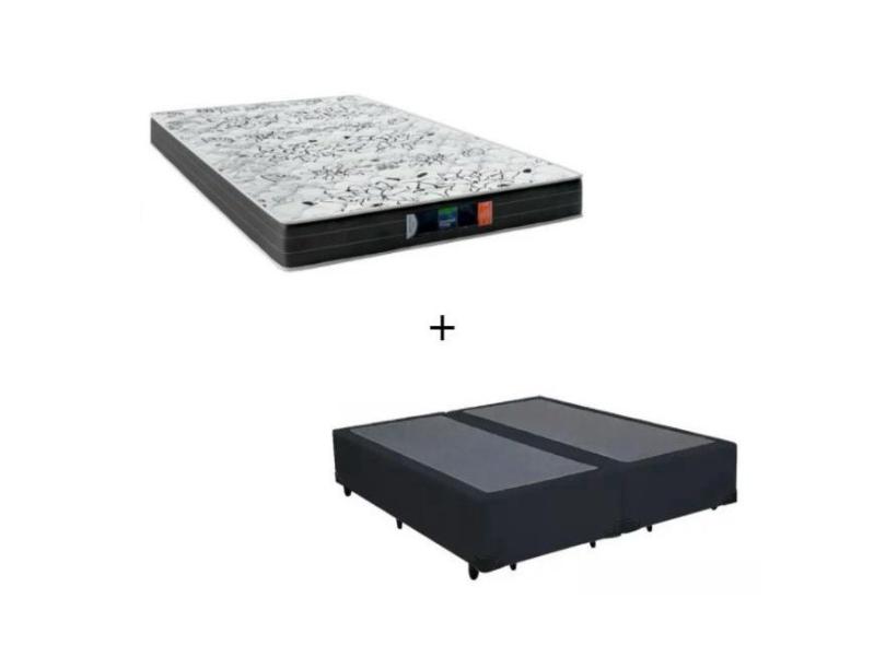 Cama Box Casal Bipartido - Tecido Sintético Preto com Colchão Extra Firme D28 - Suporta 80Kg