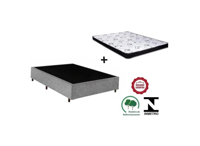 Cama Box Casal Cinza + Colchão Espuma D23 138x188x14