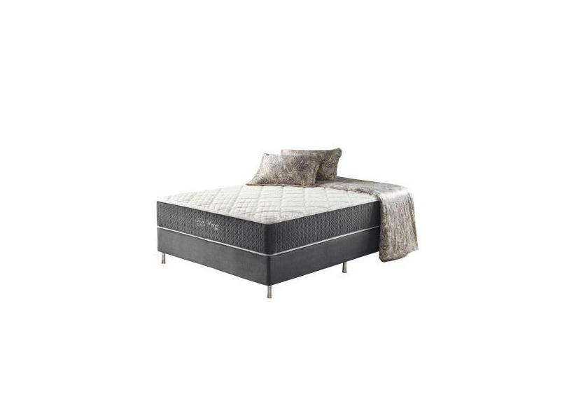 Cama Box Casal Cinza + Colchão Molas Ensacadas Suporte 200 Kg Fort Way