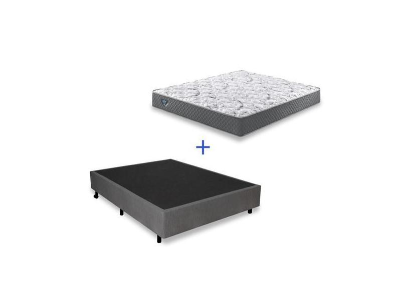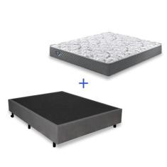 Cama Box Casal Cinza Com Colchão Mola Ensacada - Cama Inhouse