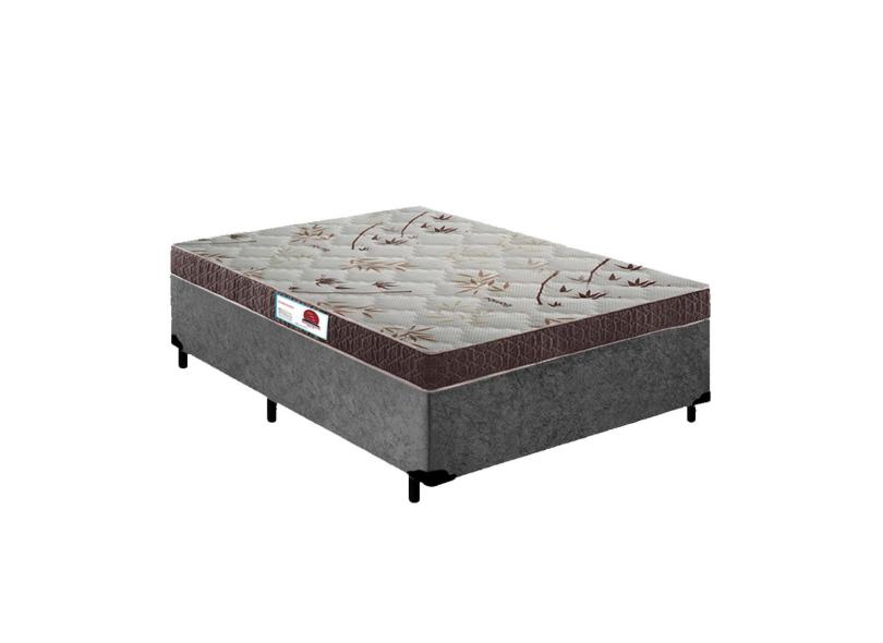 Cama Box Casal Cinza Suede+ Colchão Mola Bonnel Serra Negra