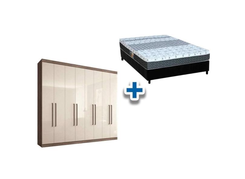 Cama Box Casal + Colchão Class Castor + Guarda Roupa Master Vip 8.4 Castanha/Off White