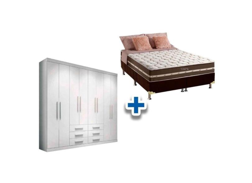 Cama Box Casal + Colchão Classic + Guarda Roupa Master 8.6 Branco