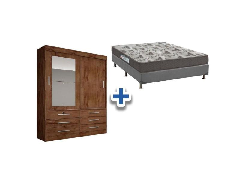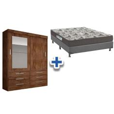 Cama Box Casal + Colchão D33 Ortobom + Guarda Roupa Sonare Canela