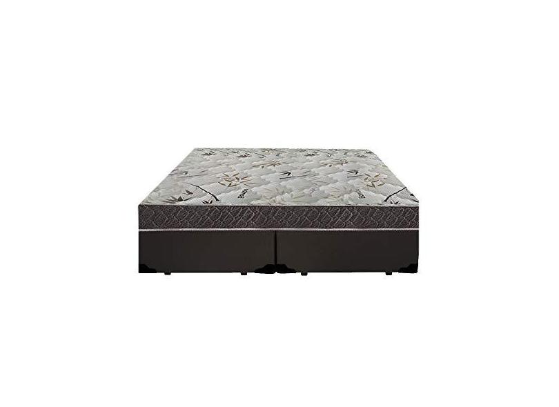 Cama Box Casal Colchão Espuma D33 Bordado + Box Bipartido Sintético Marrom Serra Negra 58x138x188