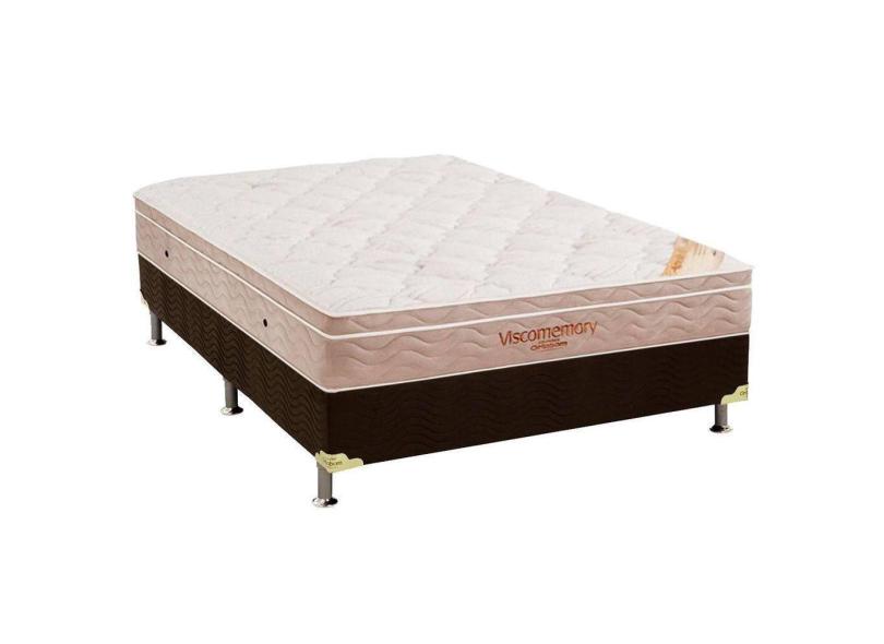 Cama Box Casal: Colchão Espuma Ortobom Viscomemory + Base CRC Suede Brown(138x188)