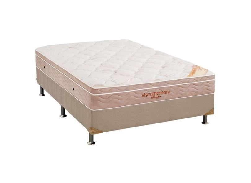 Cama Box Casal: Colchão Espuma Ortobom Viscomemory + Base Crc Suede Clean(138X188)
