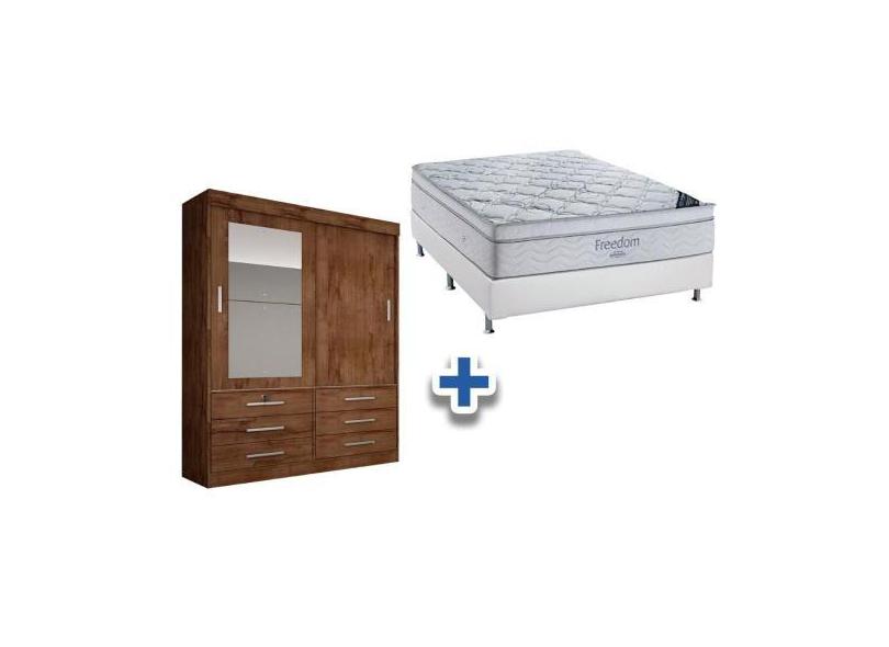 O menor preço encontrado no Brasil para Cama Box Casal + Colchão Freedom Ortobom + Guarda Roupa Sonare Canela atualmente é R$ 3.100,41.