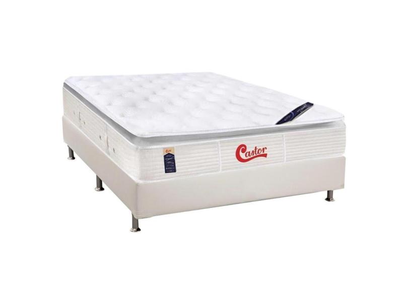 Cama Box Casal: Colchão Molas Castor Pocket Gold Star Vitagel Slx + Base Crc Courano Branco(138x188)