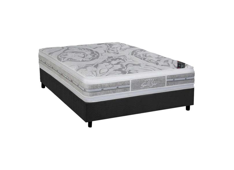 Cama Box Casal Colchao Molas Ensacadas Castor Pocket Super Luxo Latex Slx Base Crc Suede Gray 138X188