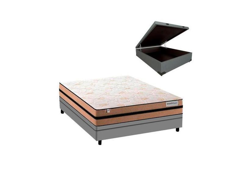 Cama Box Casal Com Baú Cinza E Colchão Smart Milano Plumatex