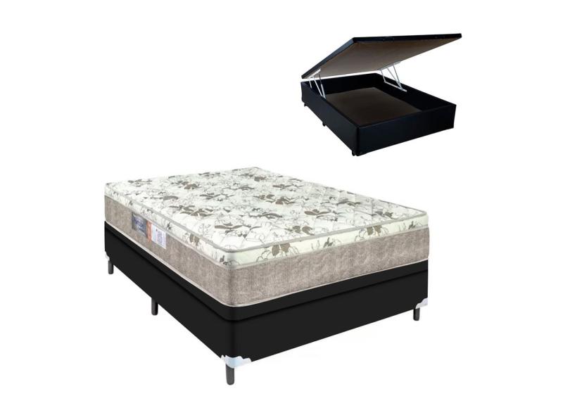 Cama Box Casal com Baú Preto e Colchão Nápoles Espuma D33