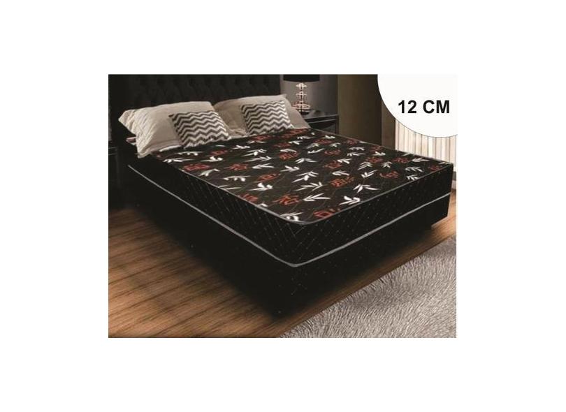Cama Box Casal Conjugada Ortopédica Preta 12 Cm Rosana Colchoes Confor