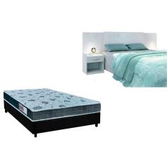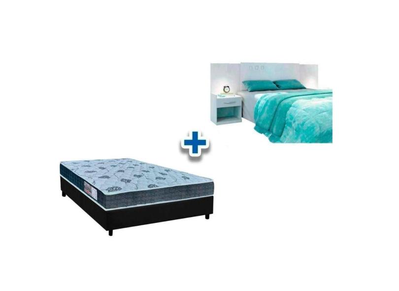 Cama Box Casal CRC + Colchão D45 Cecina + Cabeceira Plus Branco