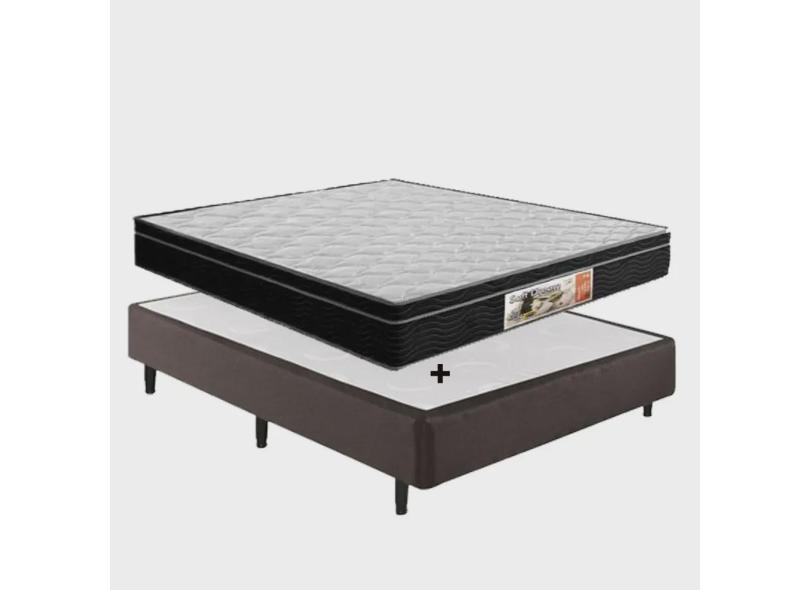 Cama Box casal Marrom sintético + Colchão Molas Bonnel 1,38 x 1,88 x 48 cm