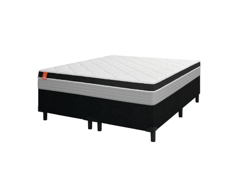 Cama Box Casal Queen Colchão Molas Ensacadas 158x198x65cm Preto/Cinza Suporta Até 130kg Por Pessoa