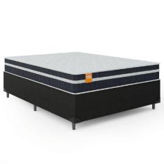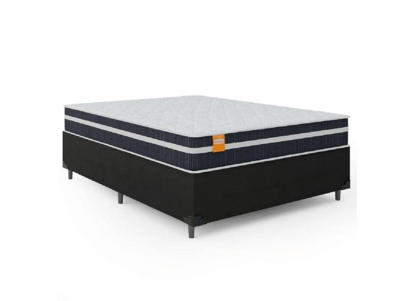 Cama Box Casal Queen Colchão Qatar 158x198x60cm Branco / Preto - Suporta Até 200 Kg Por Pessoa