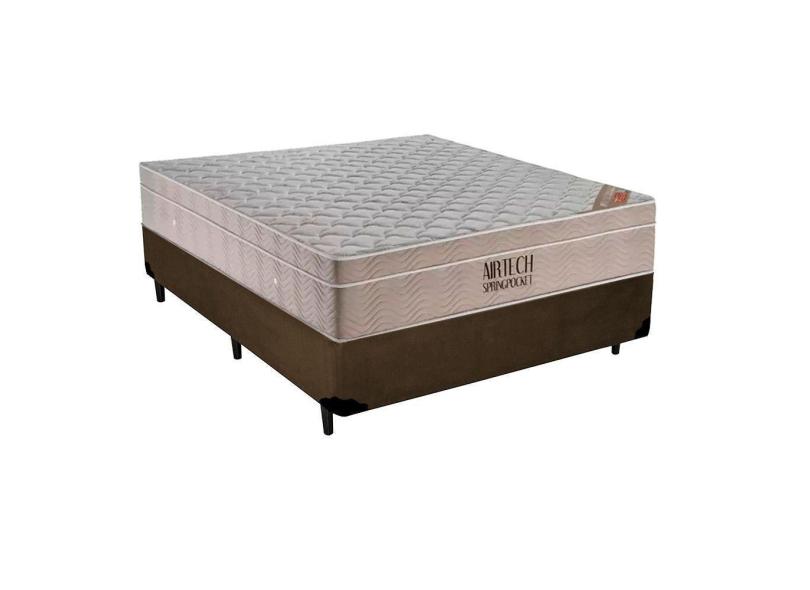 O menor preço encontrado no Brasil para Cama Box Casal Sintético + Colchão Casal Ortobom Airtech Molas Superpocket (65x138x188) marrom atualmente é R$ 1.266,17.