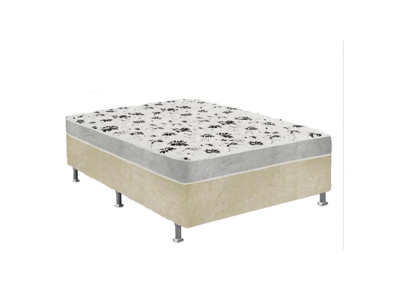 Cama Box Casal Suede Bege + Colchão Casal Suede Cinza Orto Molas Ensacada 138x188x55