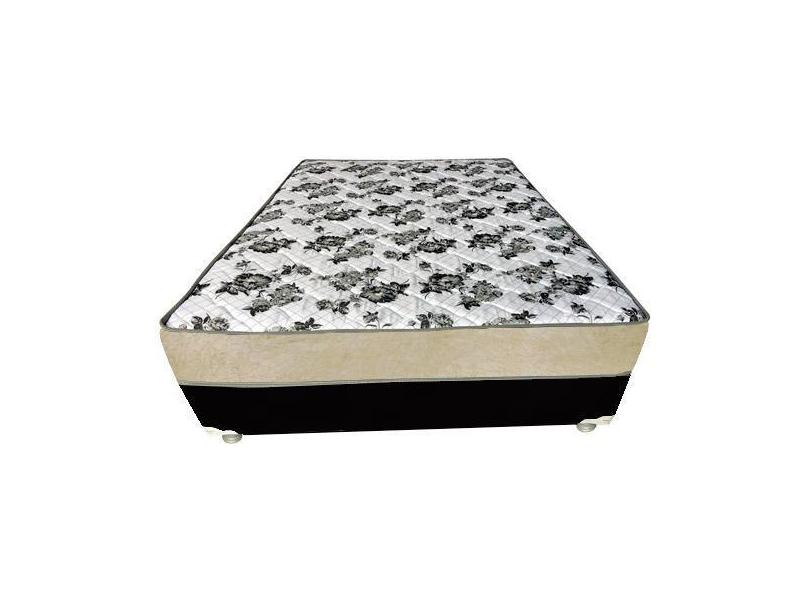 Cama Box Casal Suede Bege + Colchão Casal Suede Preto Orto Molas Bonne
