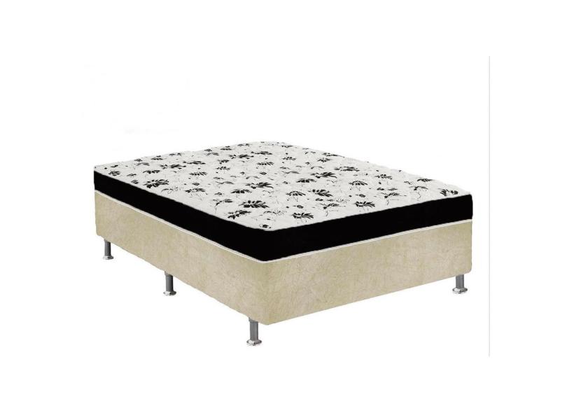Cama Box Casal Suede Bege + Colchão Casal Suede Preto Orto Molas Bonnel 138x188x55