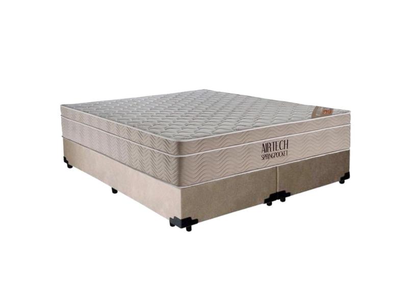 Cama Box Casal Suede Bipartido + Colchão Ortobom Airtech Molas Ensacadas 65x138x188 Bege
