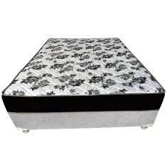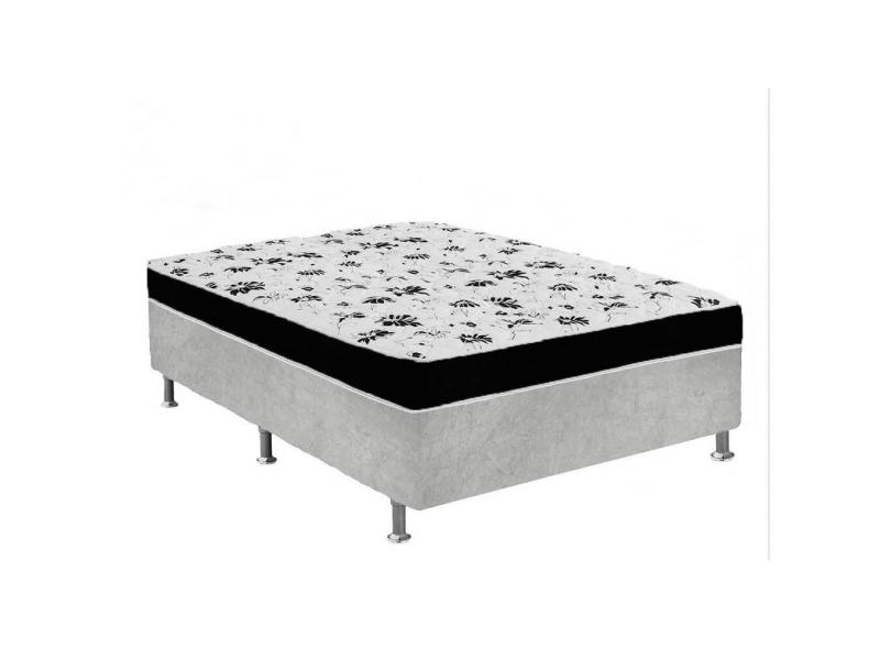 Cama Box Casal Suede Cinza + Colchão Casal Suede Preto Orto Molas Bonnel 138x188x55