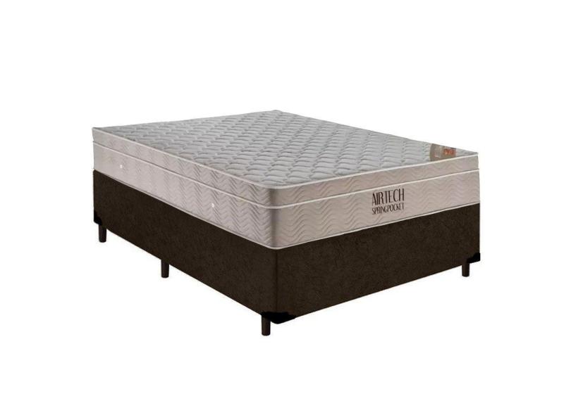 Cama Box Casal Suede + Colchão Casal Ortobom Airtech Molas Superpocket (65x138x188) marrom