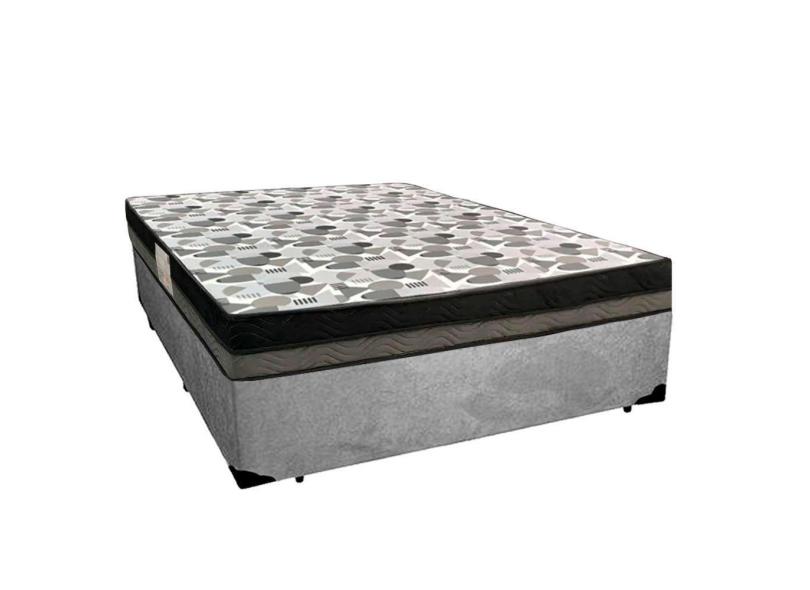 Cama Box Casal Suede + Colchão Casal Ortobom Iso Dupla Face 60x188x138 cinza