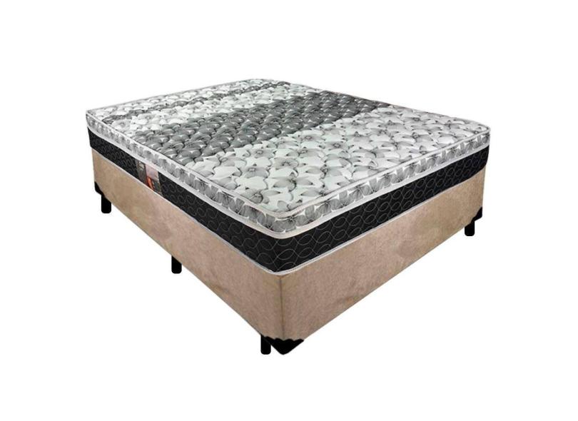 Cama Box Casal Suede + Colchão Class Molas Castor Tecnopedic One Face 138x188x65cm Bege