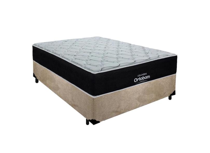 Cama Box Casal Suede + Colchão Molas Ensacadas Antares Ortobom Bege 138cm - Suporta Até 120kg Por Pessoa